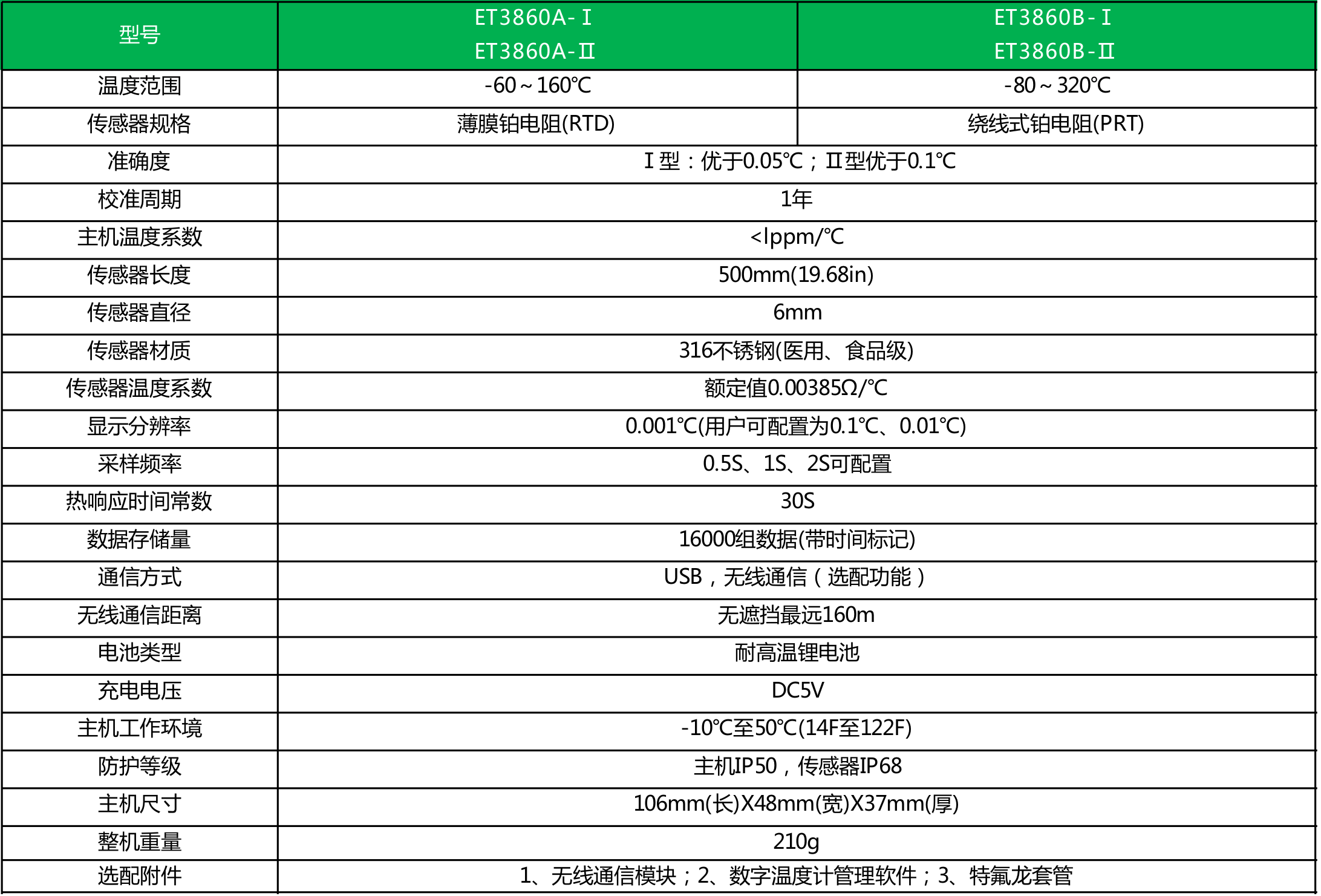 ET3860数字式标准温度计是工业温度校准、精密测量领域的最新选择,其准确性和重复性可以达到优于0.05℃/年,锂电池供电(无需更换电池)续航持久,携带方便,读数直观,坚固耐用。不仅可以在实验室作为温度标准,更可以在工业现场提供可靠、准确、高精度的温度测量。